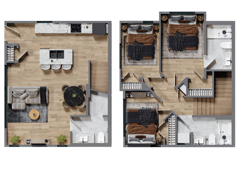 3 Floor Plans to choose from to fit your lifestyle and Budget. Designed for small families or those requiring extra space, these floor plans includes expansive living areas, a gourmet kitchen, 3 bedrooms with a master suite, and comprehensive amenities for sophisticated living.
